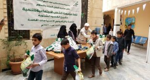 اليمن الحر الأخباري/ معين حنش دشنت مؤسسة الشعب الاجتماعية للتنمية اليوم توزيع الكسوة الشتوية للأطفال بالعاصمة صنعاء بمناسبة ذكرى المولد النبوي الشريف. وفي التدشين أوضحت مديرة برنامج الرعاية الاجتماعية في مؤسسة الشعب الاجتماعية أمة الرزاق تلها أن التوزيع يستهدف 2000 طفل من فئة الإيتام وذوي الاحتياجات الخاصة وأحفاد بلال في …