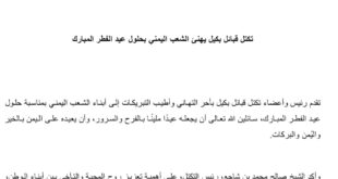 أكمل القراءة »تكتل قبائل بكيل يهنئ الشعب اليمني بحلول عيد الفطر المبارك