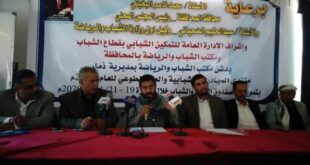 اليمن الحر الاخباري/ذمار /يسرى الحماطي برعاية وحضور الاستاذ محمد ناصر البخيتي محافظ محافظة ذمار_ رئيس المجلس المحلي ، والاستاذ عبدالحكيم الضحياني وكيل أول وزارة الشباب والرياضة ،وتحت إشراف الإدارة العامة للتمكين الشبابي بقطاع الشباب ،ومكتب الشباب والرياضة بالمحافظة : دشن مكتب الشباب والرياضة بمديرية مدينة ذمار صباح اليوم ،على قاعة …