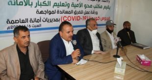اليمن الحر الاخباري-صنعاء عٌقدت بأمانة العاصمة اليوم ورشة تدريبية للتوعية ومساندة فرق وزارة الصحة لمواجهة فيروس كورونا، نظمها مكتب محو الأمية وتعليم الكبار. وفي افتتاح الورشة أكد رئيس جهاز محو الأمية وتعليم الكبار فؤاد الشامي الحرص على تنظيم مثل هذه الورش في ظل جائحة كورونا واستمرار العدوان. ودعا إلى تضافر …