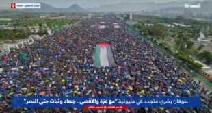 اليمن الحر الاخباري/متابعات شهد ميدان السبعين بالعاصمة صنعاء اليوم الجمعة، مسيرات مليونية متجددة إسنادا لغزة تحت شعار “مع غزة والأقصى.. جهاد وثبات حتى النصر”. وللشهر الحادي عشر على التوالي تخرج في العاصمة صنعاء ومختلف المحافظات والمديريات مسيرات مليونية أسبوعية في عشرات الساحات نصرة للشعب الفلسطيني وإسنادا لغزة. وعلى الرغم من …