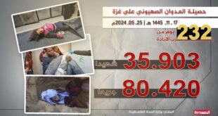 اليمن الحر الاخباري/متابعات قالت وزارة الصحة الفلسطينية، إن الطواقم الطبية في مشافي قطاع غزة تعاملت خلال الـ 24 ساعة الماضية، مع 176 شهيدًا ومصابًا جراء العدوان الصهيوني المستمر على القطاع لليوم الـ 232 تواليًا. وأفادت وزارة الصحة بغزة، في التقرير الإحصائي اليومي، اليوم السبت، بأن العدو الإسرائيلي ارتكب 5 …