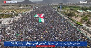 اليمن الحر الاخباري/متابعات شهد ميدان السبعين في العاصمة صنعاء و15 محافظة يمنية طوفاناً شعبياً مليونيا إلى عشرات الساحات في أول جمعة من شهر رمضان المبارك في مسيرات نصرة وإسنادا لغزة تحت شعار (رمضان اليمن.. طوفان ينتصر لغزة). وفي أول جمعة من رمضان، وبزخم جماهيري ورسمي بقيادة رئيس المجلس السياسي الأعلى …