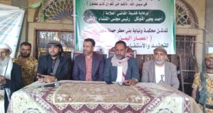 اليمن الحرالاخباري/محمدالعزيزي / نظمت محكمة ونيابة بني مطر فعالية تدشين حملة دعم إعصار اليمن للتحشيد والاستنفار في مواجهة العدوان وذلك برعاية فضيلة القاضي العلامة أحمد يحيى المتوكل رئيس مجلس القضاء الأعلى . وفي حفل التدشين الذي حضره القاضي العلامة أحمد حسين الباكري رئيس محكمة بني مطر والقضاة أعضاء المحكمة والنيابة …