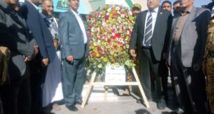 اليمن الحرالاخباري / معين حنش وضع وزير الزراعة والري المهندس عبدالملك الثور اليوم، إكليلاً من الزهور على ضريح الرئيس الشهيد صالح الصماد ورفاقه، وذلك بالنيابة عن عضو مجلس الأمة الكويتي السابق- رئيس المجلس الدولي للمحاكمة العادلة وحقوق الإنسان بجنيف الدكتور عبدالحميد دشتي. وخلال الزيارة تم قراءة الفاتحة على روح …