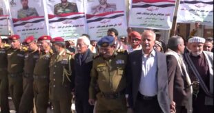 اليمن الحرالاخباري/ في موكب جنائزي مهيب شيع أبناء محافظة شبوة وشخصياتها الاجتماعية ومشائخ قبائل المحافظة في العاصمة صنعاء جثمان الشهيد المقدم عبدالقادر سرحان عبدالقادر المحضار وعدد من رفاقة الذين ارتقوا شهداء في ً في ساحات العزة والكرامة دفاعاً عن الدين والوطن. وخلال موكب التشيع الذي تقدمها محافظ محافظة حضرموت …