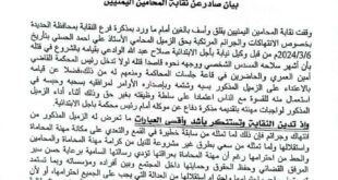 اليمن الحرالاخباري/ وقفت نقابة المحامين اليمنيين بقلق وأسف بالغين أمام ما ورد بمذكرة فرع النقابة بمحافظة الحديدة بخصوص الانتهاكات والجرائم المرتكبة بحق الزميل المحامي الأستاذ علي احمد الحسني بتأريخ 6/3/2024 من قبل وكيل نيابة بأجل الابتدائية صلاح عبد الله الوادعي بقيامه بالشروع في قتله بأن أشهر سلاحه المسدس …