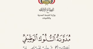 اليمن الحر الاخباري أصدرت وزارة الخدمة المدنية والتأمينات التعميم رقم (٨ ) لسنة1444هـ بشــــأن العمل بالمدونة العامة للسلوك الوظيفي وأخلاقيات العمل في وحدات الخدمة العامة فيما يلي نصه: تنفيذاً لقرار رئيس المجلس السياسي الأعلى رقم (35) لسنة 1444هـ باعتماد وإصدار وثيقة المدونة العامة للسلوك الوظيفي وأخلاقيات العمل في وحدات …