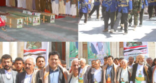 اليمن الحر الاخباري/متابعات في موكب جنائزي رسمي وشعبي مهيب تقدمه عدد من كبار رجالات الدولة وعشرات المشايخ والأعيان من مختلف محافظات اليمن تم أليوم في ميدان السبعين بصنعاء تشييع جثمان الشهيد العقيد/ردفان يحيي صالح العرجلي شهيد العدالة والحرية إلى مثواه الأخير إلى جانب عدد من شهداء القوات المسلحة البواسل الذين …