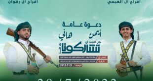 اليمن الحر الاخباري/صنعاء يحتفل الزميل الغالي نبيل نعمان مقبل العبسي يوم الجمعة القادم بزفاف نجله الخلوق/ أيمن وذلك في صالة الدار البيضاء الواقعة خلف مبنى مؤسسة الثورة بمنطقة الجراف.. وبهذه المناسبة السعيدة تتقدم اسرة تحرير موقع اليمن الحر الاخباري للزميل نبيل ونجله أيمن وكذلك للشاب الخلوق هاني أحمد رضوان …